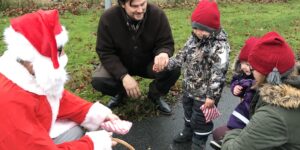 Julemanden kom 3.søndag i advent til Skærum for at lede efter sine rensdyr Skærum Sogneforening hjalp med diverse udstyr, så julemanden på “corona” sikker måde kunne dele slikposer ud til …