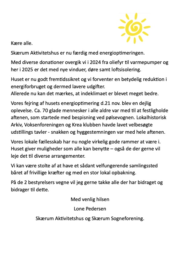 Færdiggørelsen af energioptimeringen, Skærum Aktivitetshus Udgivet i 22. november 202522. november 2025 af Webmaster