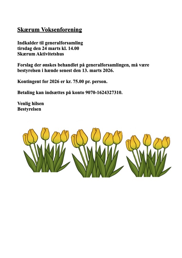 Indkaldelse til Voksenforeningens generalforsamling den 24. marts Udgivet i 21. februar 2026 af Webmaster